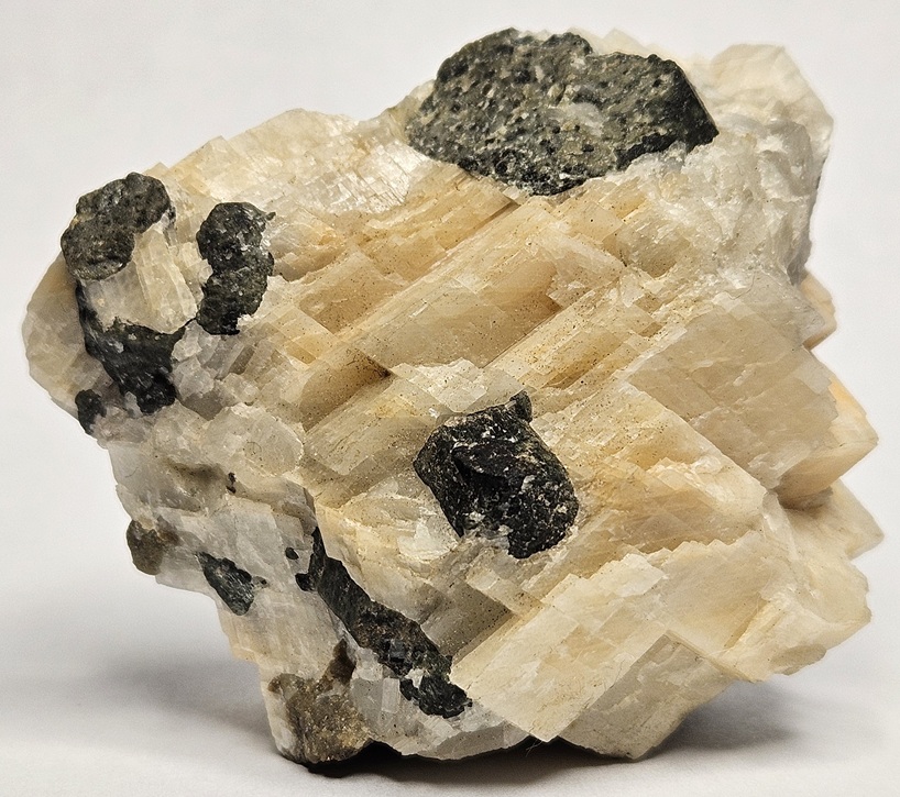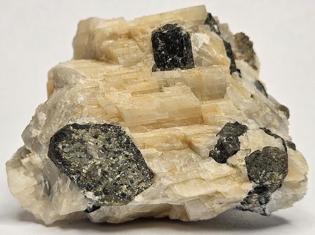 [Dark Green Blocky Crystals with Light Tan Euhedral Scapolite]