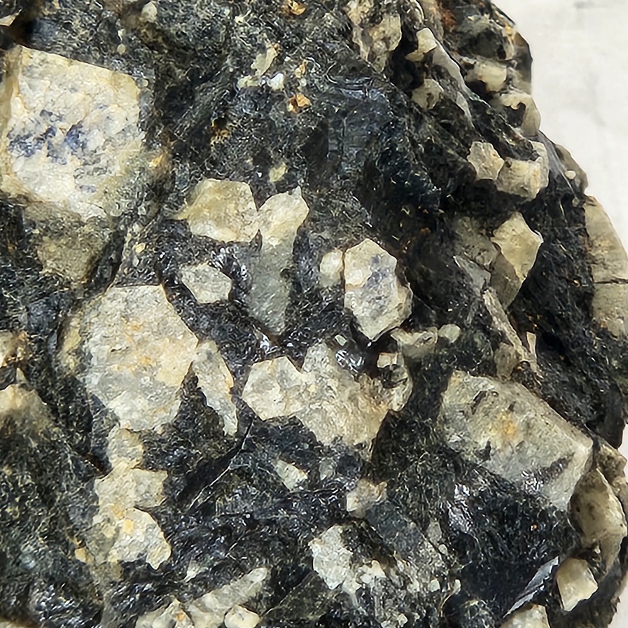 [Pale Blue Hexagonal Crystal Section with Minor Biotite]