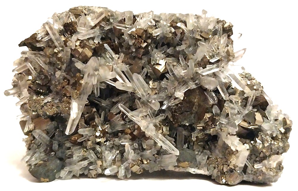 [Sharp Terminated Acicular Rock Crystals on Pyrite and Chalcopyrite]