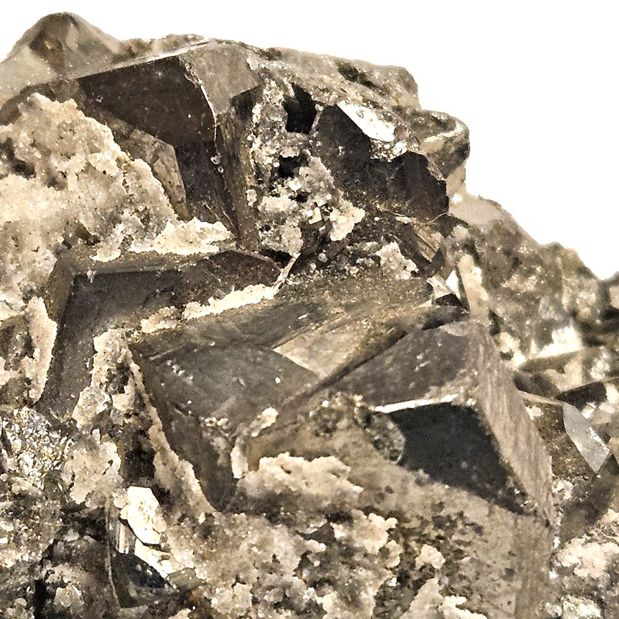 [Lustrous Metallic Black Terminated Crystals on Massive with Quartz]