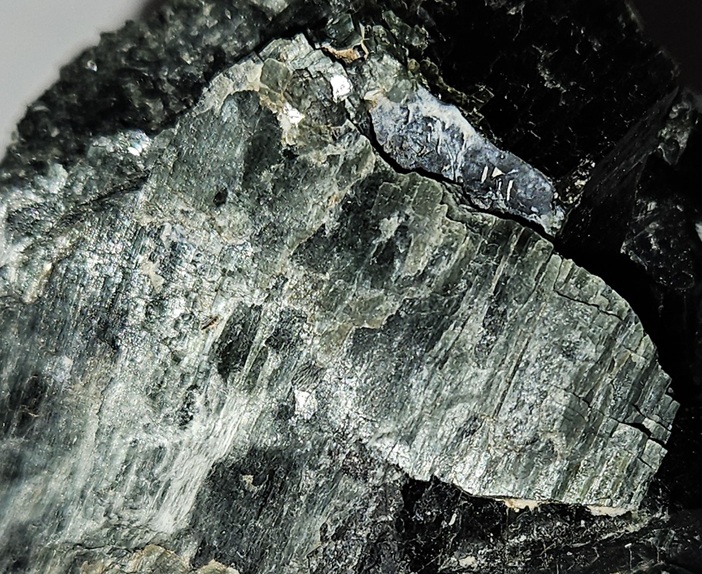 [Silver-Blue Fibrous Crystal Blades on Matrix]